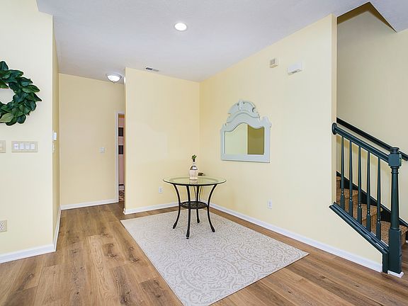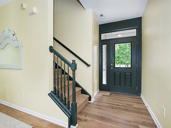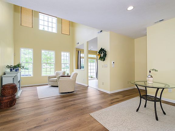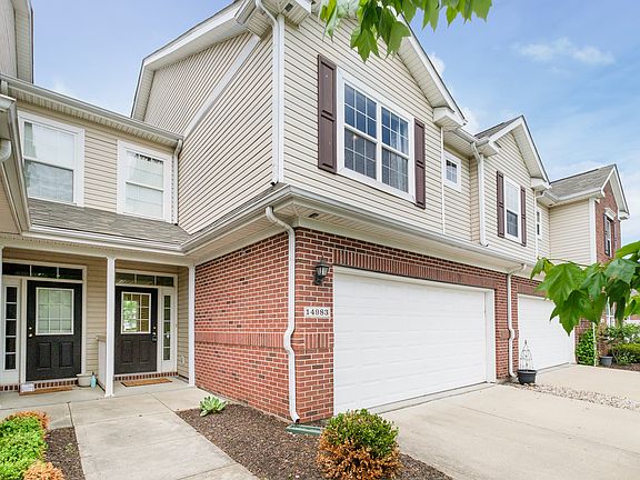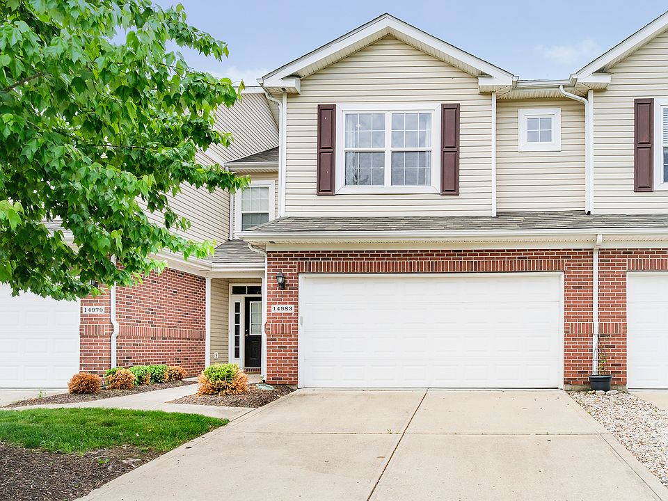 Welcome home to your immaculate, updated condo in prime Noblesville location! Beachy-feel, light-filled, colorful, and ready to move in! High-end luxury vinyl plank floors, high-quality newer carpet, & jute carpeted stairs.Soaring 2-story great room w/ electric fireplace and custom sun shades. Private back patio conveniently located off kitchen w/ sliding glass door. Corian counters, under mount sink, SS appliances, & new micro. Baths updated~new sinks, designer floors & lighting. Large owner's room has custom wardrobe units in closet.Laundry room w/ sink & is set up for stackable washer and dryer.2 car garage w/ epoxied floor & overhead storage racks. Water softener system. HVAC 3yrs. Gorgeous front view of ponds w/ fountains & gazebo.