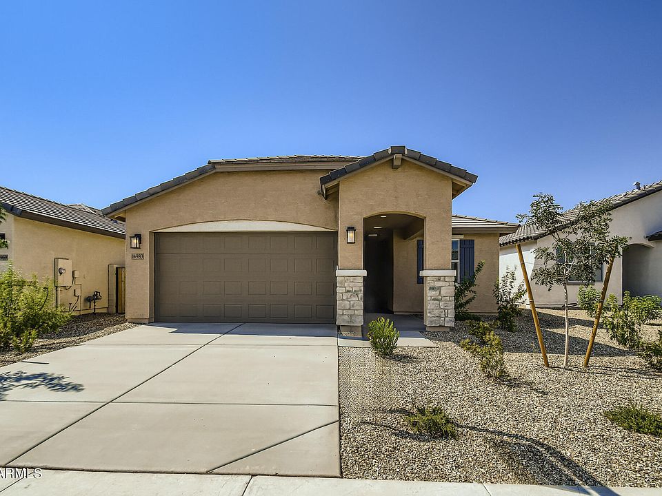 Seller is offering a credit toward a rate buydown and closing costs with our preferred lender—ask us how you can save thousands over the life of your loan! Windstone Ranch is a new master-planned community in Surprise, AZ offering access to entertainment, shopping, dining, and beautiful views of nearby regional parks. Residents here enjoy a range of onsite amenities, including a pool, playground, and basketball court—perfect for both relaxation and recreation. This home comes fully equipped with all brand-new stainless steel kitchen appliances and features 17x17 tile flooring, stunning quartz countertops, and modern white cabinetry, blending comfort, style, and everyday functionality. Photos are of actual home. A copy of the public report is available on the ADRE's website.