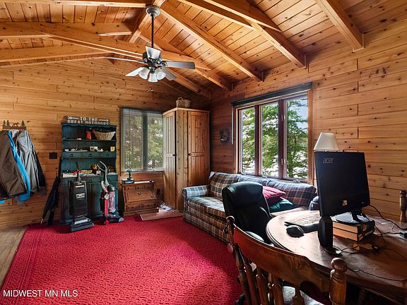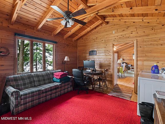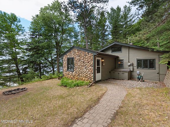 This charming 2-bedroom, 1 bath cabin offers stunning pine covered vaulted ceilings and interior woodwork. The massive 2-sided brick fireplace adorns the living area. Spacious lakeside deck, detached double garage and loads of privacy on this 1.3 acre lot with 200' of lakeshore. Great fishing and boat ability from 1st to 4th Crow Wing Lakes. Make your lake dreams come true!