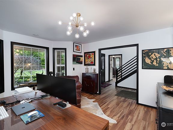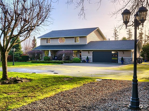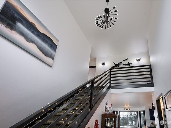 Prepare to be captivated by the stunning setting of this home w/southern views of Skagit Bay/Whidbey Island. The 1.25-acre property is a gardener's paradise with beautiful, landscaping & greenhouse. Covered porch leads you into the foyer, w/soaring cathedral ceilings create a grand first impression. The open kitchen has concrete island w/seating, Quartz slab countertops, a chef's desk, & storage. The office/dining room, separated by elegant pocket French doors, is across from the cozy living room. The family room features a river rock fireplace, custom built-ins, & partial view of bay. Upstairs are 2 large sized bdrms & Primary suite w/ bath, walk-in closet. Outside features an attached 2-car garage, sauna, & shed. View Protection Easement!