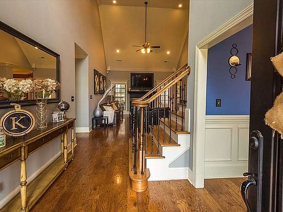 Open to working with buyers' agents. Custom home built by Winter Homes includes upgrades throughout - granite vanities in all wet spaces (including media room bar area); this 4 bedroom, 3 bath with media room and separate office offers gorgeous kitchen w/ granite, double oven, gas range, custom hood, tiled backsplash and large island with convection microwave. The Living room includes a vaulted ceiling, five-inch hardwood flooring and oversized trim. Isolated master w/ sitting area, two walk-in closets (one w/ custom built shoe shelving). Master bath includes his/her vanities, tiled shower & jacuzzi tub. Dining room configured with wainscoting, coffered ceiling and extensive trim work. Upstairs provides two additional bedrooms, a full bath w/ granite double vanity, huge media room/playroom w/ bar area plus an office equipped with custom shelving. Other amenities to note: -Screened-in rear porch with enclosed/sliding vinyl windows -Walk-in storm shelter built into garage. -Three car garage with detached fourth garage bay, both spaces configured with built-in cabinets. One bay equipped with 220V receptacle for electric vehicle charging. -Privacy fencing with brick columns