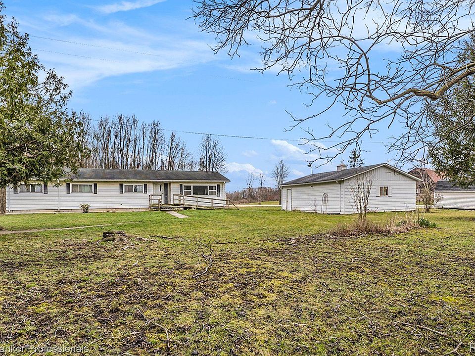 Welcome to your cozy country retreat! Nestled on a 1-acre corner lot, this charming ranch home offers the perfect blend of comfort, convenience, and natural beauty. With features including fruit trees, a 2-car garage, and a freshened up aesthetic, this property is sure to capture your heart. With tons of natural light streaming through the large windows, the Inviting open floor plan effortlessly connects the living and dining areas and provides an ideal space for gatherings and relaxation. The family room, complete with a cozy wood-burning stove, is just asking you to unwind and enjoy evenings by the fire. Adjacent to the family room is a delightful 4-season room serving as the perfect spot for enjoying your morning coffee or curling up with a good book. Home also features a cute kitchen with ample counter space, appliances are included, Spacious bedrooms, including a large primary bedroom with plenty of space to get ready, an en-suite bathroom, and First-floor laundry. Outside, the expansive yard features fruit trees, so Whether you're hosting a summer barbecue or simply soaking up some country living, this outdoor space is perfect. With its fresh aesthetic updates, and picturesque setting, this ranch home is ready for you! Don't miss your chance to make this home your own! Schedule a showing today!