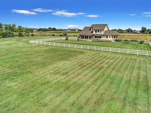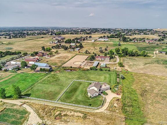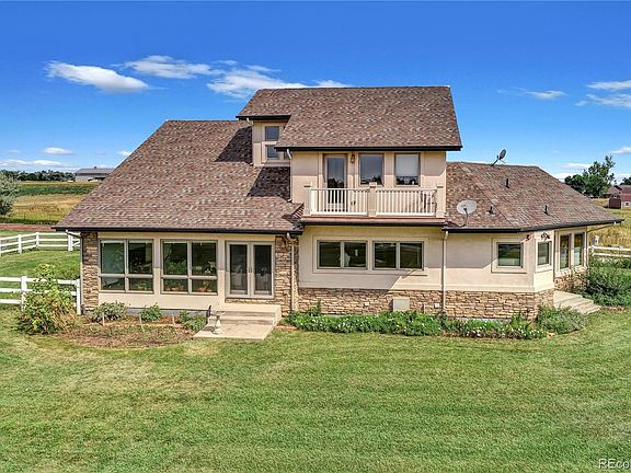 Custom Home located on 2.1 acres in unincorporated Adams County! Tucked away at the end of the road for ultimate privacy and beautiful mountain views! No HOA, zoned A-1, Horses allowed along with other animals such as chickens, goats, cows. This home was built to utilize passive solar with large windows specifically placed on the South side of the home, also allowing for natural light. Radiant heat floors on all levels. This home offers a foyer as you walk in the front door, open layout with vaulted ceilings, tile on the main level, custom woodwork, fireplace in the great room, main level master bedroom, laundry room with cabinets and utility sink. Kitchen offers corian counters, abundance of cabinets, kitchen island and bar top, walk in pantry, custom cooktop, appliances included, small built in drink fridge, kitchen sink overlooks the pasture. Main floor master bedroom offers walk in closet, master bathroom with large walk in shower, and a door to access the side patio. Custom built-in wood book shelves as you walk up the rounded staircase to the 2nd floor. 2nd floor offers hardwood floors, loft area, 2 spare bedrooms (one bedroom has a balcony), Jack and Jill bathroom with a jetted tub, and a door off the loft to access the 2nd story deck. Finished office space off garage. Unfinished basement with roughing for bath, projector and screen included). Outdoor space was meticulously designed for gardening & water storage; raised garden beds with drip system, garden beds around the home, 3 rainwater collection cisterns fed by roof gutters and pond, apple trees, grape vines and raspberry bushes, perennial & wild flowers. The lot is fully fenced with separate backyard and separate pasture area. You can build an accessory dwelling unit and a shop if desired. Location is prime: located close to highways, Mall, restaurants, walking paths, 25 min to Downtown, 25 min to Boulder. PLEASE READ BROKER REMARKS.