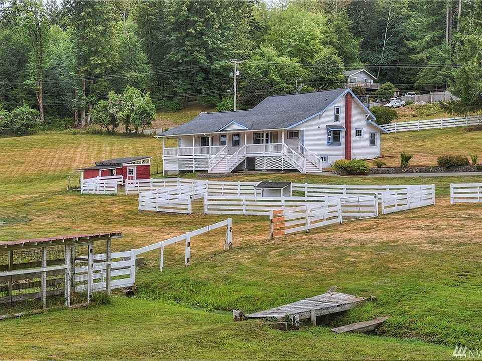 A Rare Find! Charming farm house on over 2.5 fenced acres. Hardwood, wainscoting, classic staircase to Bedrooms. Timeless features yet nicely updated. Some original wood; with plate rails. Country porch front and back. Close to Silverdale and Clear Creek. There are several opportunities: M.I.L, home office, rental or expand your living area.