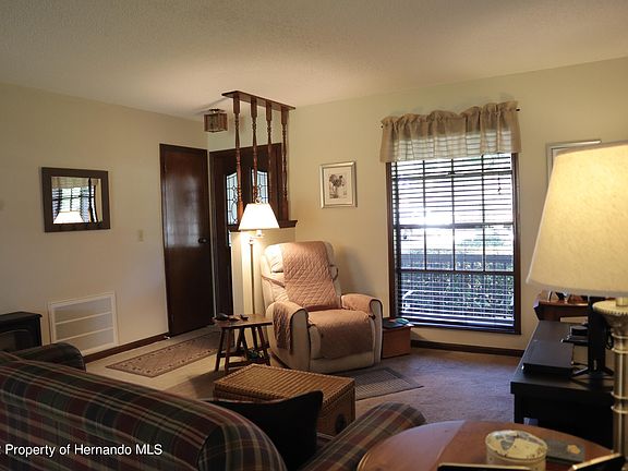 Serene park like setting on this corner lot location. Covered front porch. 2 bedroom 2 bath split plan home with a deep 1 car garage. Living/dining combination with sliding glass doors to screen porch. 10x25 screened in covered porch. Bay window in kitchen with plant shelf. Oversized concrete slab for grilling. New roof in 2014. New A/C in 2016.