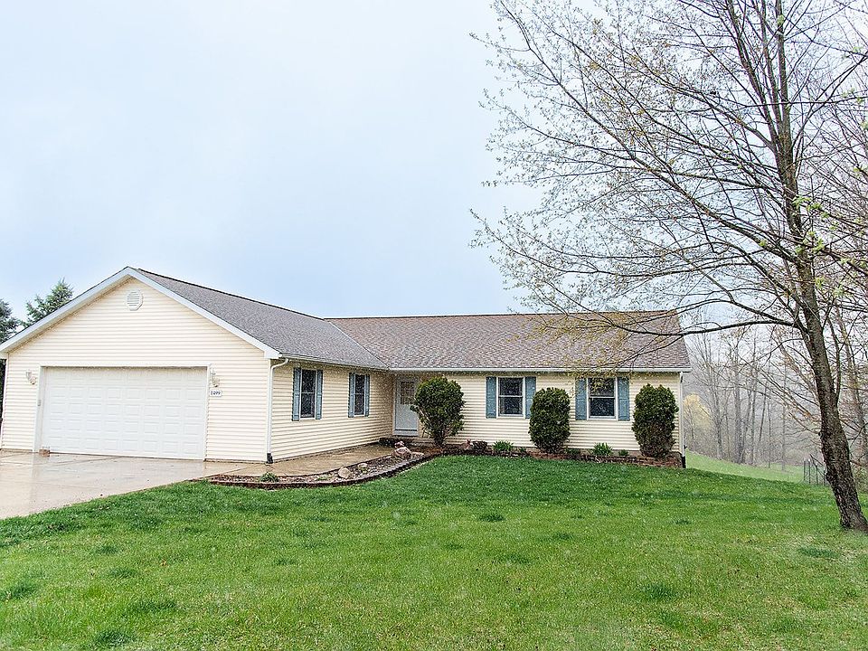 This 3 Bed, 2 1/2 Bath home sits back of the road on beautiful rolling acres. Pole barn for the toys & equipment. Large kitchen and large dining room. Beautiful Family room loaded with windows an electric fireplace. Spacious living room. Enter from 2 car garage to Mud room. Large main floor laundry. Gigantic walkout basement. Plumbed for a bath room. Exit basement to lovely patio & an above ground pool with deck. Bring your imagination. Basement has large windows-room for an exercise room, Entertainment Room & still more room. Some appliances are newer. New water softener, also reverse osmosis. Geo Thermo heat.