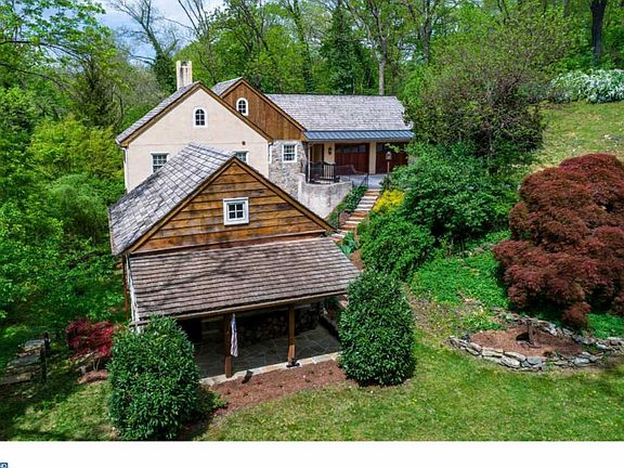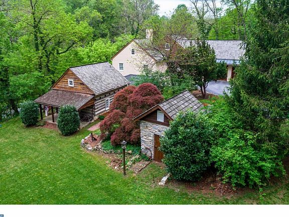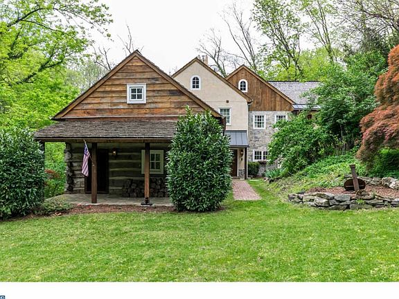 Welcome to 1499 Church Rd where old world charm meets modern day convenience with this late 18th century log cabin and two skilled 20th and 21st Century additions. The log cabin section houses the Master Suite with hardwood floors, walk-in closet and entry to a private front porch. The Master Bathroom features a double copper bowl granite vanity, free standing cooper tub and walk-in shower. The first addition was built in the 1990s, offering a Living Room with vaulted ceiling, hardwood floors, a copper wet bar and a powder room which host the Washer and Dryer on the "bridge" to the original cabin. The turned staircase leads down to the walk-out finished basement with utility room and large rec room with closet. The hardwood floors were extended throughout the whole two story second addition which was built off of the Living Room in 2008. The first floor offers the Family Room with wood burning stove and is open to the Eat-In Kitchen with Soap Stone Countertops and Island with seating, steel double sink, walk-in pantry and stainless appliances including electric smooth top range, dishwasher and refrigerator. Off of the dining area is a slider to stairs that lead up to the stone patio that overlooks Valley Creek and beautiful scenery. Upstairs there are three additional bedrooms, one of which is a princess suite with celling fan, closet and full bath with shower/ combination and a hall bath with double bowl granite vanity and tile walk-in shower. This floor also grants access to the 2-car attached garage with a spiral staircase up to two rooms that have the potential to be finished or just a great space for storage. Also on this property there is an old spring house, smoke house and a carriage house that is perfect for a studio or workshop. It has electric, heat, water and is plumbed for a full bath. Property lines extend over Valley Creek. This property is in close proximity to restaurants, shopping centers, the Paoli train station and major roadways including 202, 29, and 30.