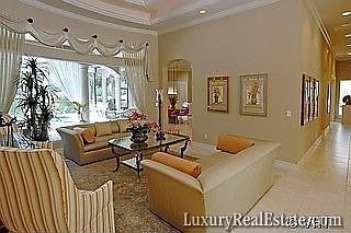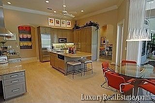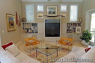 H.3583 - Exquisite interiors, expansive outdoors, extra special all around! Southern fairway vistas from almost all living areas enhance this custom built home with heated 35? lap pool and spa. In addition the kitchen and family room overlook a screened courtyard terrace to the west, ideal for afternoon retreats ?away from home?. Built for entertaining family and friends this residence boasts a gourmet kitchen with large island, separate prep area, SubZero & Thermador appliances and granite counters and backsplash. A 500 bottle climate-controlled wine ?cellar? and a spacious dining room with tiered tray ceilings, rich crown molding and warm cove lighting make for memorable dinner parties. A library-den with full wall shelving, wood floors, lots of storage space, an electronic lighting system, even a pet shower in the double garage with separate golf cart bay ? the special features list goes on and on. Wait until you see the gorgeous master suite with marble bath!