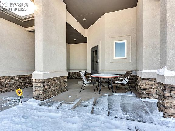 Nestled amidst the backdrop of mountain vistas and open spaces, this modern, classic home offers a design of sophistication and comfort with many highlighted features such as a STUNNING OPEN FLOOR PLAN , a GOURMET KITCHEN, LUXURY PRIMARY SUITE and an ENTERTAINMENT HAVEN. As you enter this home, step into a spacious living area featuring a stone fireplace with endless sunlight and stunning views from every window, all creating a casual and inviting atmosphere. The large kitchen boasts a substantial granite island, upgraded stainless steel appliances, and a walk-in pantry with a large eating area and bar seating. The primary suite is large with access to the patio, walk in closet and a spa like walk in shower. There is an additional bedroom, main bath and an office (could be a conforming 3rd bedroom) on the main level. Downstairs is the entertainment zone with 3 additional bedrooms, wet bar, bathroom and movie area complete with a projector. The outdoor space is equally amazing with lush grass, fencing and beautiful xeriscaping. Both the covered patio in the back and the inviting porch in the front provide stunning views and endless opportunities for relaxation and entertainment. A radon mitigation system and 22 SOLAR PANELS have been installed as well.