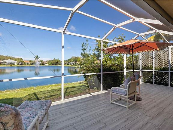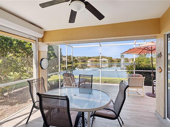 This lake front villa has an extended lanai that has beautiful western sunset lake views! Three bedroom (third bedroom set up as den) two bath turnkey furnished unit. Granite kitchen countertops, large tile in living areas, real bamboo woods floors in bedrooms, remodeled bathrooms, roll down hurricane shutters on lanai and a tiled extended lanai are many of the great updates this villa has. Brand new AC, newer roof, paver driveway and walk way. This home is located in Sterling Oaks in Naples and is minutes drive to four beautiful Gulf beaches and of course every other amenity you can imagine. Enjoy resort amenities that offer a resort pool, hot tub and Cabana bar that offers lunch and cold beverages and happy hour get togethers. There is a remodeled Florida style clubhouse with a restaurant and bar that is open Friday evenings, holidays and special occasions. The clubhouse also has a fitness center and multi purpose room. Bocci and pickle ball courts as well, all included with your purchase. Optional tennis membership that offers 12 clay tennis courts, lighted for night play, a USTA on site pro for lessons and clinics.