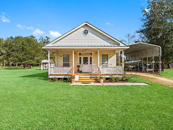 Unique acreage setting with multiple use unrestricted opportunities. Approximately 6.75+- acres with a quaint 960 sf home with metal roof and vinyl siding. CAD shows 8.3 acres but seller is retaining approximately 1.5 acres. Already fenced with an additional power pole and septic for a mobile home or RV. Oversized carport and an enclosed back porch with A/C along with a nice sized barn will accommodate most needs. The 2/1 home has adequate room for anyone looking to downsize or a great starter home. Public water, aerobic septic and natural gas. Several large chicken coops offers plenty of space to have your own eggs or meat chickens. The property has never flooded and is located within 20 minutes from Houston area!