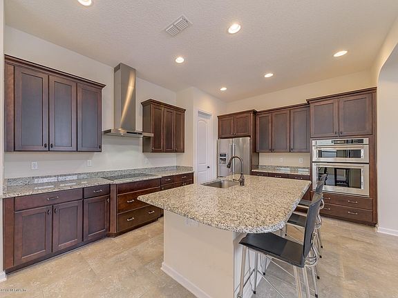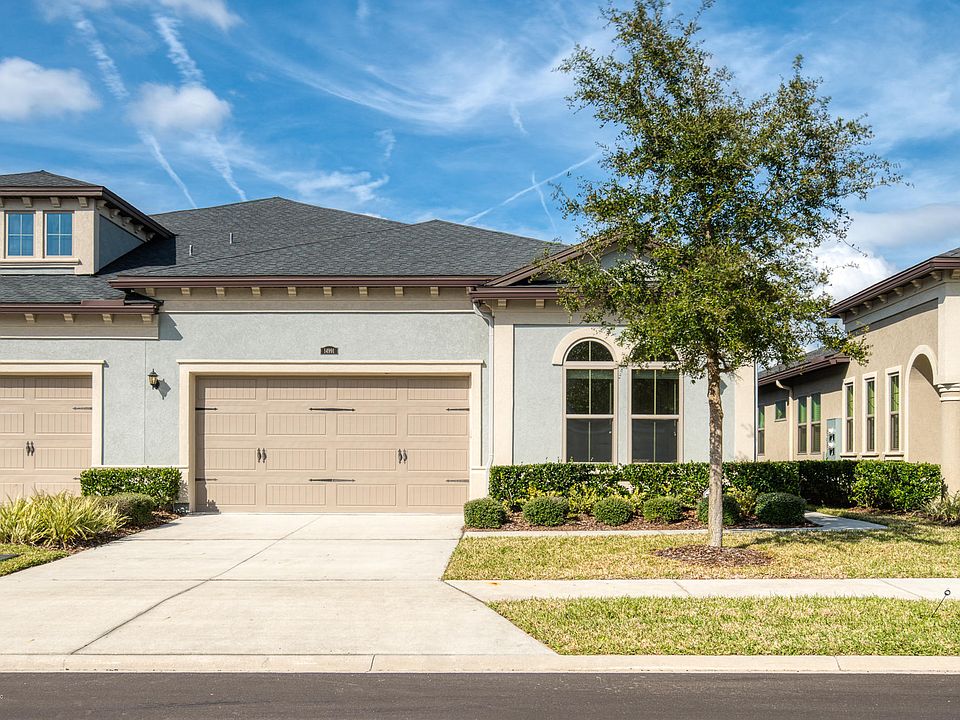 LUXURY Villa with gorgeous WATER VIEW. 3 bedrooms/ 2.5 bathrooms PLUS OFFICE. This home features granite countertops throughout, stainless steel appliances, 5.1 Surround Sound Pre-wire, Wet Bar with fridge, Screened Lanai with water view, tile throughout main living areas, drop zone at garage entry, laundry cabinets, 10' ceilings, recessed lighting, and MORE! ESCAPE to your master oasis and SPA-LIKE bathroom with walk-in tile shower. THIS ONE WON'T LAST! Feels like a single-family home but with the benefits of LOW MAINTENANCE LIVING in a gated community. HOA covers lawn maintenance, lawn pest control, irrigation, roof replacement and exterior paint. BEST LOCATION with easy access to shopping, dining and NEW DURBIN SHOPPING CENTER. Amenities include pool, fire pit, & more!