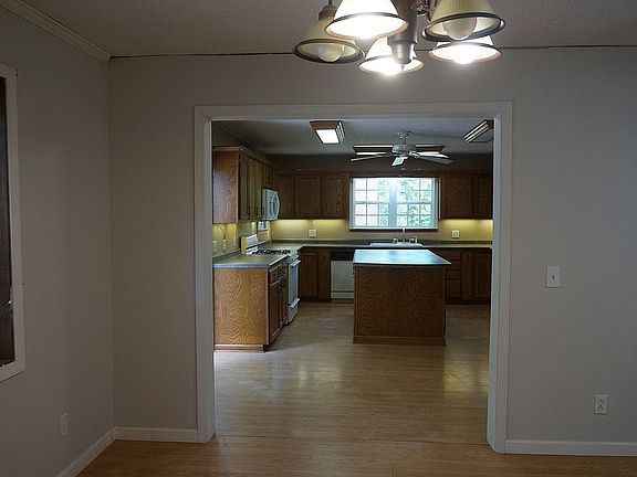 30 x 60 shop with 18 wide x 12' high garage door with remote opener, walk thru door , rear double doors and 6 windows, plumbed for sewer and water and well insulated. Asphalt drive way. House has a great kitchen withs lots of cabinets, large island . Laundry room, master bedroom has a private deck. Living room with fireplace has new carpeting. Large dining room, den has new carpet also. 2 full baths on main floor and one full bath upstairs. 4 bedrooms upstairs with a nursery or office, floored attic. Pond out back . 8 acres mostly wooded.
