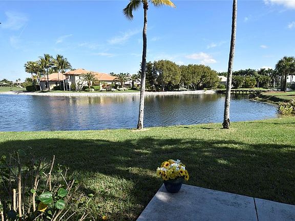 C.15874 - STUNNING VIEWS.Whether you are greeting the day from the master bedroom window,lounging on the outdoor patio,relaxing on the screened lanai or spending quiet time in the living room,you will enjoy stunning water & golf course views from this 1st floor condo in the River's Edge cmmty of Gulf Harbour in southwest Ft. Myers.Towering palm trees frame your view of sparkling water & lush greenery.Watch wild birds along the shoreline.Enjoy easy care-free lifestyle.Tile thru entire lvg area. Bullnose countertops in kitchen.Updated bathrooms w/comfort level cabinets & faux marble countertops.Tasteful décor & comfortably furnished.Huge closets in both master & guest bedrooms. Coat closet in lvg room. Master has large shower w/gorgeous tile.Just a few steps to heated commty pool.Covered carport.Close to Sanibel beaches, causeway beaches, Bunche Beach & Ft. Myers Beach.Quick trip to enjoy either a Minnesota Twins or Boston Red Sox spring training game.Handy access to SW International Airport.Restaurants & shopping to satisfy every taste.With optional reasonably-priced Gulf Harbour Country Club equity membership, enjoy addl amenities like golf, fitness, pool, tennis & 2 restaurants.