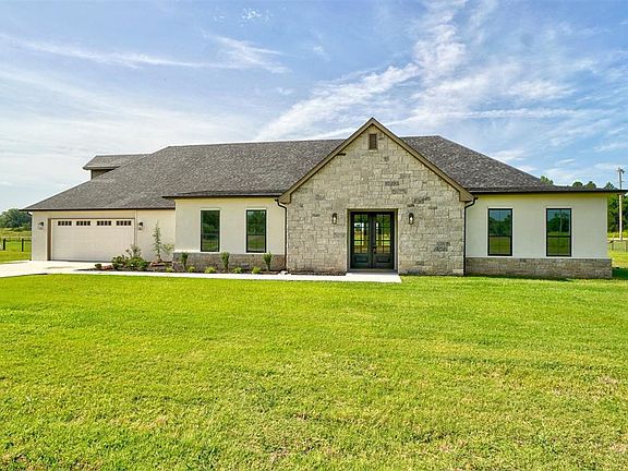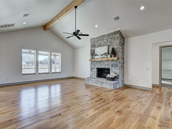 Welcome to 14997 White Oak Lane! This stunning quality-built home, situated on a 1.16 acre shop approved lot, welcomes you through double doors into a dedicated entry. As you follow the beautiful white oak floors, the home reveals an open floor plan. The spacious living, dining, and kitchen areas are sure to impress. From the vaulted ceiling, the stone fireplace with gas logs and a custom-made mantel, and the massive amount of natural light from the large windows, the living space is perfect for family gatherings or just relaxing. How about a view of the rolling landscape while you do dishes? This perfectly located kitchen, which will be complete with a gas range, 2nd wall oven, dishwasher and fridge, is also home to an amazing pantry, providing more counterspace and storage. The four bedrooms are privately located. The primary suite enjoys the beautiful views across the countryside and is also home to the primary bath, including a double sink vanity, jetted tub, separate shower, private toilet area, and massive primary closet. All three secondary bedrooms have walk-in closets and two have private baths. The upstairs bedroom, with a private bath, could also be used as a study or game room. Additional highlights include a spacious utility room, with lots of storage and a sink, and the oversized 3 car tandem garage, which contains a large storage closet. The vaulted ceiling of the living area continues onto the massive covered patio. This additional living space is sure to provide many hours of relaxation and entertaining. Don’t miss your chance to see this home, with its spacious rooms and warm tones. Conveniently located close to I-40 and Hwy 177, makes it only 30 min to Tinker AFB, and 40 min to Bricktown. This addition is new and will eventually be gated.