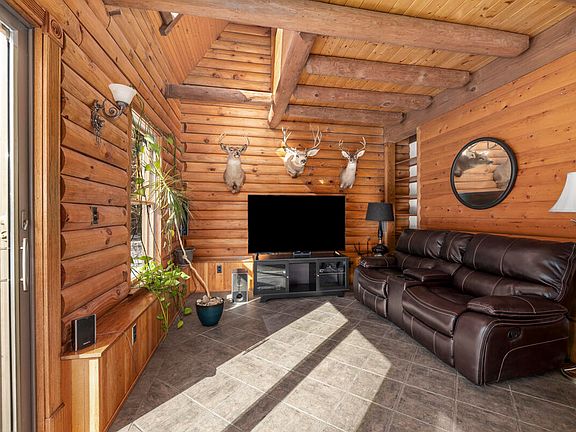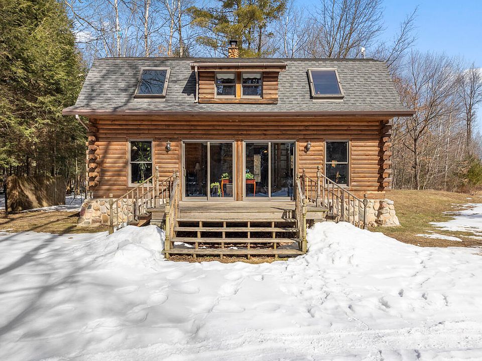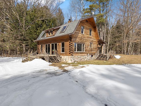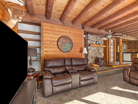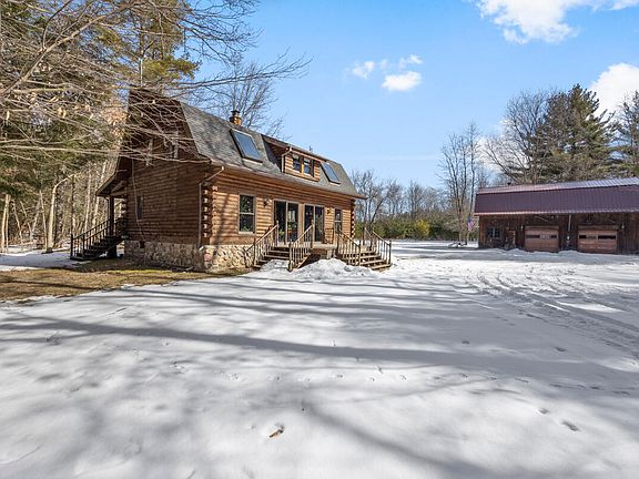 Welcome home to 14998 3 Mile which includes a 1 year home warranty. This custom-built log home has so much to offer. It was built with a passive solar design allowing windows, walls, and floors to collect, store, reflect, and distribute solar energy making it extremely cost efficient. The interior of this home features a ton of character and has many great features including granite countertops, wood flooring, tile flooring, hardwood trim, jet tub, and skylights. There are 3 bedrooms, 2 full bathrooms, and a full crawl space with cement flooring offering a very dry and spacious area for storage. Not to mention, there are 5 amazing acres that have an abundance of wildlife and privacy with a large 2 story barn/garage that is 24x36. AND, there is high speed fiberoptic internet! Call today.