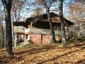 Charming rustic post & beam style cedar home in wooded setting offers 3 bedrooms, 3 baths, open floor plan, beamed knotty pine cathedral ceilings & massive rock fireplace. Huge master or could be divided into two if needed. Tile floors except master bedroom, super efficient dual fuel central heating system & much more! BEAUTIFUL view from the covered newly refurbished deck.