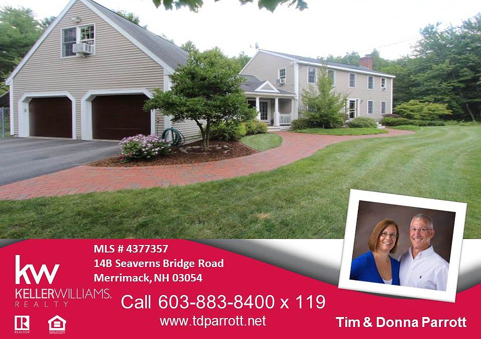 For more information, please contact: Tim or Donna Parrott, Keller Williams Realty at (603) 512-3273 or Office at (603) 883-8400 x119 or visit my website at http://www.tdparrott.net. Nicely updated colonial with 3 bedrooms plus a bonus room and a two car attached garage plus a 7 stall carriage shed for the hobby enthusiast. Beautifully updated kitchen with maple cabinets, granite counters, stainless steel appliances and fabulous island. Open concept kitchen/living room and gleaming hardwood and tile floors throughout first level. 3 updated baths and brand new carpet on the second floor. 2.870 acre lot with nicely landscaped level backyard with screen porch, deck, patio, and pool. Great private lot set back off the road.