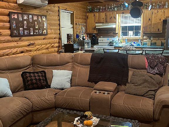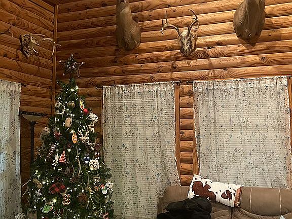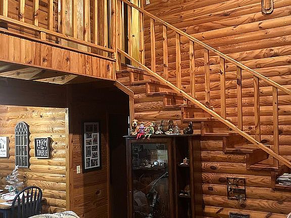 Log cabin with a tin roof, 2 bedrooms 2 bathrooms with a loft space that we use for a bedroom. Log siding on the inside. Country setting quiet and peaceful neighborhood. The house is setting on .40 acre.