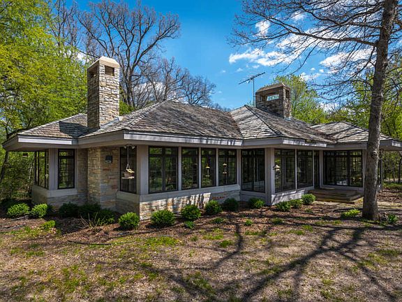 Spectacular 16+ acre wooded horse property with stunning Frank Lloyd Wright prairie style inspired home. Home is of the highest quality with prairie stone construction and breathtaking views from every window. Three Large bedrooms and 3-1/2 baths. Master bedroom has two full baths, one for him, one for her. Beautiful stone 3-sided fireplace in great room. Oversized laundry room with access to the 3 car attached garage. Basement is unfinished waiting for your decorating ideas. A whole house and barn generator included. Large stocked pond, great for year round activity. Barn has 5-12x12 stalls and 1-standing stall. Heated wash rack and tack room, plus viewing room with full bathroom. 70x180 indoor arena (regulation dressage size) with mirrored walls and sprinkler system. Large drive-through attached storage garage for trailers, and farm equipment. Good turnout. Groom's apartment in the barn. This property is unparalleled. This is definitely a very private little "slice of heaven. "AGENTS AND/OR PROSPECTIVE BUYERS EXPOSED TO COVID 19 OR WITH A COUGH OR FEVER ARE NOT TO ENTER THE HOME UNTIL THEY RECEIVE MEDICAL CLEARANCE."