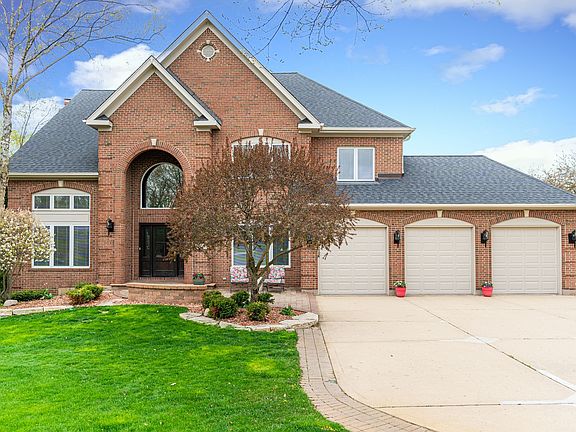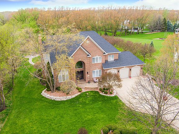 Experience the charm of this captivating 3,354 sq ft home tucked away in the desirable Timber Ridge Subdivision, a gem within the Hampshire School District. Situated at the end of a cul-de- sac, enjoy the 1.05 acre lot with views of farmland and natural landscape. The professionally landscaped yard features an in-ground sprinkler system. This home was recently refreshed with a near-complete repaint in a neutral palette inside and out. This custom home has unique craftsmanship including an expansive Amish front door, vaulted ceilings, tray ceilings and skylights. This home also features solid cherry 6 panel doors and tall baseboard trim throughout. Enjoy the warmth of the wood flooring throughout the first and second level. Natural light cascades through the Pella transom windows, equipped with built-in removable blinds for added comfort and privacy. Enjoy the warmth of three masonry fireplaces, one located on each level of this home. At the heart of this home lies the kitchen featuring custom Wood-Mode cabinets, a large island with slide out shelves, premium appliances including a Sub- Zero refrigerator, Viking stove, a Bosch dishwasher, beautiful neutral granite countertops with matching backsplash. A large walk-in pantry with additional storage, and wet bar with beverage refrigerator make this kitchen a dream. Rounding out the main level you will find a large dining room, spacious living room and adjoining family room separated by French doors, a mudroom with laundry, and a powder room. The open staircase will take you to the second level where you will find 4 spacious bedrooms. The luxurious primary bedroom shines with its own fireplace. The master bathroom was remodeled in 2011 and includes a soaker tub, radiant heated floors, and a walk-in steam shower. The master suite is complete with his and hers walk-in closets. The walk-out fully finished basement features a full kitchen walk-in shower, radiant heated floors, and a masonry fireplace. Watch beautiful sunsets from the expansive deck, which was repainted in 2023. No more refilling gas tanks for the grill! Your future home is equipped with a dedicated natural gas line for grilling. An additional entertainment area includes the large stamped concrete patio with firepit. Recent upgrades include a new roof installed in 2020, and two A/C units and furnaces replaced in 2017. Additional amenities include Culligan water filter system, owned water softener, central vacuum, security camera system, whole house built in speaker system, and a heated 3 car garage with epoxy floor.