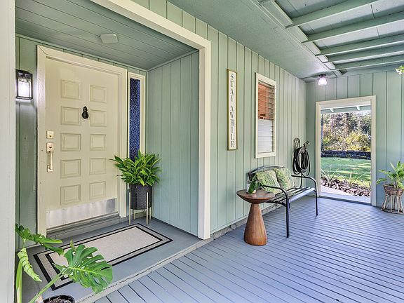 This beautifully crafted, upgraded 3 bedroom 3 bath custom home is set in a serene location on Kaloli Point, tucked away on a quiet, no-through street at the edge of vast estate lands, offering exceptional privacy and tranquility. A paved driveway extends to the rear of the home, leading to a spacious outdoor entertainment area ideal for gatherings and relaxed island living. The fully fenced and gated property adds an extra level of security and exclusivity for this enclave.