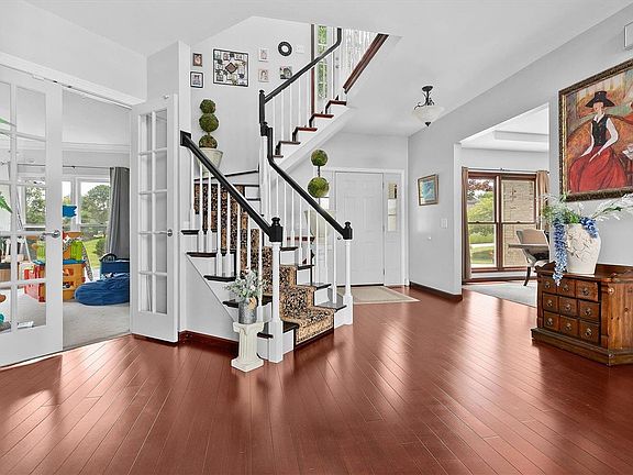 Waterfront living w/a view of the 7th tee of the golf course makes this home the ideal cul-de-sac location! This beautiful home offers 6 bedrooms, 4 baths & a finished walkout basement. Stunning two story great room w/woodburning fireplace & endless natural light! The open concept layout is perfect for entertaining w/an updated kitchen boasting granite countertops, tile backsplash, pantry, prep peninsula & SS appliances adjacent to the eat-in dining area. The main floor owner's suite has his/hers closets & full bath w/double sink & separate whirlpool tub & shower. The formal dining room, large office & laundry room complete this functional main floor! Upstairs are 3 generous sized bedrooms along w/a Jack & Jill bath. The finished walkout basement could be a great mother-in-law suite or expanded living space w/2 large bedrooms, a full bath, bonus room & family room w/wet bar! Freshly painted 46x14 deck overlooking the water! New dual HVAC system & water heater - 2020! MASCOUTAH SCHOOLS!