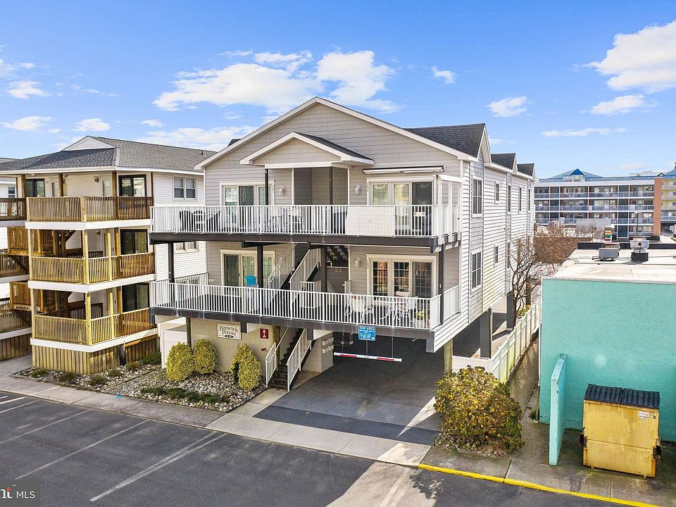 Welcome to Fenwick Pointe where prime location meets a wide open and airy floor plan with 3 bedrooms and 2 full baths situated only a few steps from the warm sand. This small condominium complex hosts only 4 units with a main level storage unit and assigned parking for each. The welcoming and spacious front porch is perfect for enjoying whispering breezes off the ocean. The inviting living room is filled with daylight and welcomes you in. Flowing seamlessly from the living room, the lovely kitchen features a breakfast bar island. Primary bedroom is complete with en-suite full bath and personal balcony perfect for sipping morning coffee. The entire unit features a plethora of storage which is a stand-out asset to this Ocean City condo. Day trips to the beach have never been easier with a main level storage unit great for storage all your beach essentials. Upgrades include recently installed hot water heater, carpet, building sprinklers and painted garage level. This North Ocean City location makes it easy to enjoy both Maryland and Delawares sought-after beaches and attractions. Take the opportunity to make this the perfect beach getaway or valuable rental property!