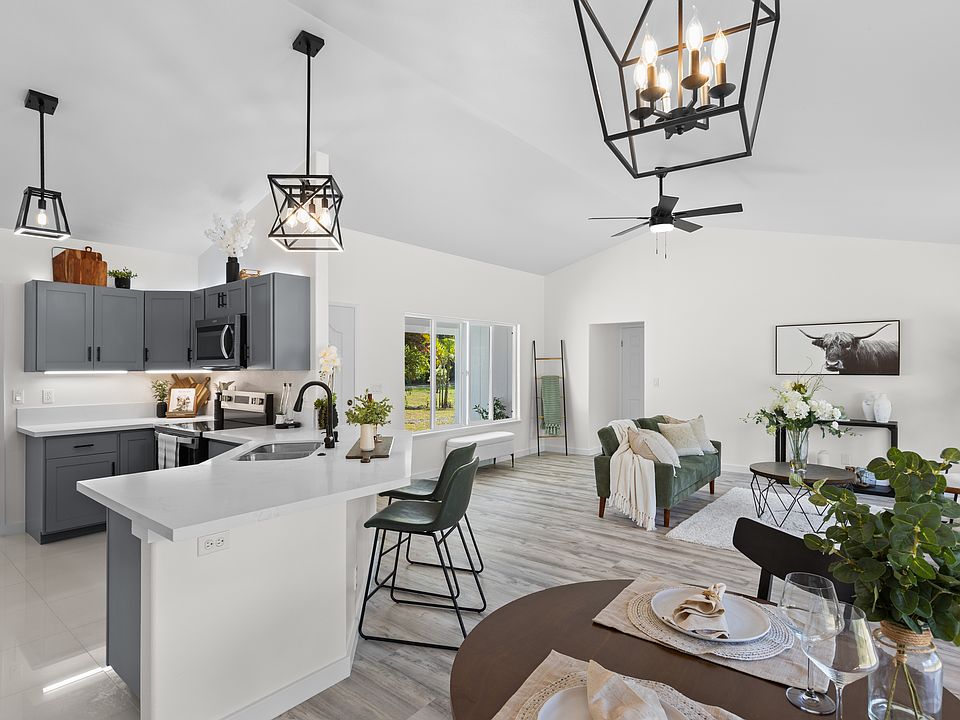 Discover this stunning full remodeled split floor plan 3-bedroom, 2-bathroom home situated on a lush, private 1-acre lot in the desirable Upper Hawaiian Paradise Park subdivision. Thoughtfully renovated with modern finishes and attention to detail, this move-in ready residence offers the perfect blend of style, comfort, and functionality.<br><br>Step inside to an open-concept living space filled with natural light and vaulted ceilings, enhanced by custom hardware and multi-function lighting fixtures that allow you to set the mood for any occasion. The heart of the home is the beautifully renovated kitchen, featuring sleek solid surface counters, striking grey custom-built cabinetry, stainless steel appliances, and unique glassy white tiles that continue seamlessly into the bathrooms for a cohesive, modern design.<br><br>The primary bedroom sits on one end of the home with walk in closet, ensuite bathroom with dual sinks and walk in shower. The guest bathrooms have been fully updated, combining contemporary elegance with thoughtful functionality. The two spacious bedrooms on the other end of the home provide comfort and versatility, while the inside laundry room—complete with washer and dryer hookups—adds everyday convenience.<br><br>Set on an acre of tropical privacy, this home is a rare opportunity to enjoy modern living in one of East Hawai‘i’s most sought-after neighborhoods.<br><br>Click on the video icon or copy and paste https://show.tours/v/ZnsZRsm to watch a full walk through.