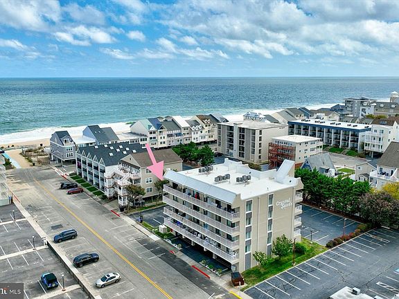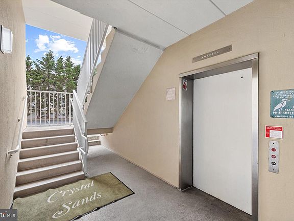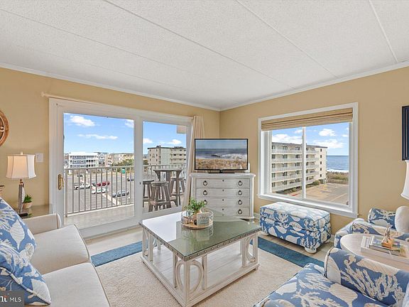 Do you know the song, Sunrise, Sunset? Well that is what you will get with this absolutely gorgeous North Ocean City elevator-equipped 4th floor condo - location, location, location is northernmost to the Delaware border! This 3 bedroom, two-bath oceanblock end-unit condo with an ocean view offers a blend of modern elegance and coastal charm. The views from the living room, kitchen, dining room and one of the bedrooms make the ocean the star of the show! But that's not the only star . . . the exquisite, upscale designer furnishings are absolutely gorgeous and of the best quality. The living room and dining area both open onto a spacious balcony perfect for sipping your morning coffee while enjoying the sunrise or dining al fresco while taking in the evening sunset. The kitchen is designed with both convenience and style in mind and the inviting breakfast bar with conveying stools is perfect for casual meals or quick snacks. The refrigerator is equipped with an ice/water dispenser on the door, yet you also have the convenience of an under-counter ice maker discreetly tucked beneath the counter providing a steady supply of ice without taking up much space. The living room is equipped with a beverage fridge adding a touch of luxury and convenience. The primary suite with its own balcony is spacious and the newly renovated bathroom is sleek with shiplap, open wood shelves and a large walk-in shower with classy glass doors and designer tile. The built-in shower niche is perfect for storing bath essentials. The second bedroom also enjoys ocean views while the third bedroom is large with a desk/office nook. The completely renovated hall bath with tub/shower enclosure is fresh and inviting. Imagine after a long day at the beach sinking into a warm bath! The hallway is home to a linen closet, as well as a laundry room with a full size washer and dryer. In addition to the luxurious interior features, this condo offers your own dedicated parking space located in an undercover garage, as well as extra owner parking in the lot behind the building. Your personal ground-level storage unit is perfect for storing your beach chairs, umbrellas and toys when not in use. There is also an outdoor shower, as well as an owner-shared storage unit with luggage carts, etc. This gem is perfect for enjoying all Ocean City and Fenwick Island have to offer - restaurants, bars, miniature golf, shopping and more! *****RECENT UPDATES: Both bathrooms gutted and renovated; new LVP flooring in foyer, hallway, kitchen, living room and dining area; freshly painted hallway, kitchen, living room, and dining area; new bedroom furniture and mattress in 3rd bedroom; addition of commercial under-cabinet ice maker; a new drink fridge with expanded countertop; new sliding glass door in living room and stationary glass panel. Previously the HVAC system and water heater were replaced in 2021; the roof replaced in 2020; and the entire outside of this intimate 12-unit condo building was refurbished and painted in 2024! Note: No looking directly into other condo decks due to parking lot view.