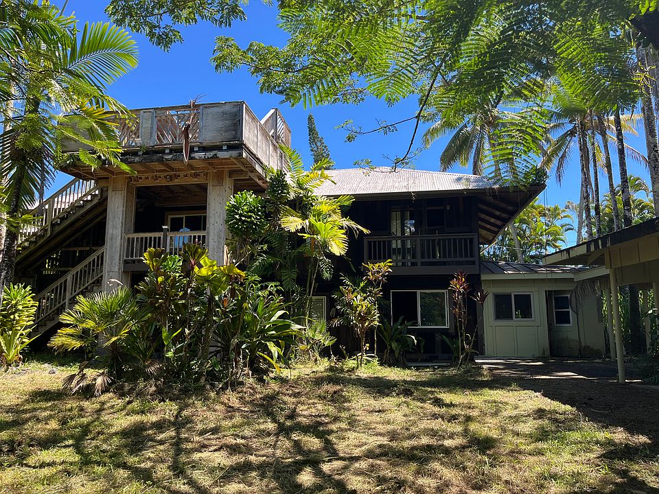 Relax & Listen to the distant Ocean from this personal Hawaii Resort Like property that has a remodel started. Design and create your paradise amongst 40+years of mature landscaping. Restore this 2 story redwood construction home with lots of windows and custom folding sliding doors that open up to a wrap around deck. At one time this property had views of Mauna Kea & Hilo Bay. This is the last property on the makai (ocean side) of the road bordering over 4,305 acres of Shipman property. Fully fenced when seller purchased although it may need some updates or replacement in sections to bring it back to life. This home has 2 bedrooms 1 bathroom upstairs with an open Kitchen and Living room with a wrap around deck. Downstairs is more of an open slate as it has a few rooms including a storage room and a bathroom. There is a covered carport and also room for 10+ cars to park if needed or build a garage or workshop. So many possibilities on this mature landscaped property. Enjoy many varieties of palms, varieties of Croton, Ulu, Avocado, Mangosteen, Black Bamboo, Ti Plants, Banana, Cacao (Chocolate), and a Coconut Palm for your pleasure.<br><br>Many outdoor Hawaiian inspired structures have been started including an outdoor gym with 2 showers. A Yoga Shala for tranquility & peace. Covered relaxing areas by the lily pad filled pond which at one time had a waterfall as well. Use your imagination to bring this property to your dream.
