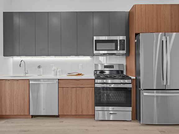 e the first to experience the ultimate in luxury living at BayPark! This brand new building features 30 designer residences with a perfect blend of one and two-bedroom apartments. Perfectly situated in Bayonne's sought-after downtown area, just one block from the 8th street Hudson Bergen Lightrail for a convenient commute into NYC. Each residence is a masterpiece of design, featuring 10-foot ceilings, floor-to-ceiling windows, expansive living spaces, and upscale finishes. The kitchens are equipped with brand new appliances, double-door fridges, and arctic white quartz countertops, stylish two-tone cabinetry and spacious islands create the perfect space for entertaining. The bathrooms are equally impressive, with stylish designer touches like LED frameless circular mirrors, high-gloss floating vanities, and acrylic soaking designer tubs. Plus, with massive walk-in closets and high-efficiency central heating and cooling, you'll enjoy the ultimate in comfort and convenience. Each residence includes an in-unit washer and dryer. Building amenities include private indoor garage parking with convenient EV charging stations, an exclusive rooftop fitness studio, and a stunning sundeck rooftop oasis featuring grills and firepits - perfect for relaxation, entertainment, and taking in breathtaking views. Prices listed are net effective pricing. Take a tour today! Offering 1 month free on a 13th month lease, no broker fee, no amenity and no move in/out fees.