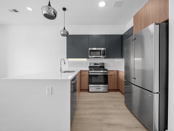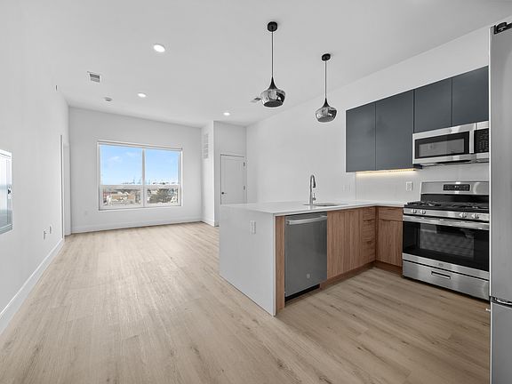1 month free! Be the first to experience the ultimate in luxury living at BayPark! This brand new building features 30 designer residences with a perfect blend of one and two-bedroom apartments. Perfectly situated in Bayonne's sought-after downtown area, just one block from the 8th street Hudson Bergen Lightrail for a convenient commute into NYC. Each residence is a masterpiece of design and functionality, featuring 10-foot ceilings, floor-to-ceiling windows, expansive living spaces, and upscale finishes. The kitchens are equipped with brand new appliances, double-door fridges, and arctic white quartz countertops, stylish two-tone cabinetry and spacious islands create the perfect space for entertaining. The bathrooms are equally impressive, with stylish designer touches like LED frameless circular mirrors, high-gloss floating vanities, and acrylic soaking designer tubs. Plus, with massive walk-in closets and high-efficiency central heating and cooling, you'll enjoy the ultimate in comfort and convenience. Each residence includes an in-unit washer and dryer. Building amenities include private indoor garage parking with convenient EV charging stations, an exclusive rooftop fitness studio, and a stunning sundeck rooftop oasis featuring grills and firepits - perfect for relaxation, entertainment, and taking in breathtaking views. Prices listed are net effective pricing. Take a tour today! Offering 1 month free on a 13th month lease, no broker fee, no amenity and no move in/out fees.