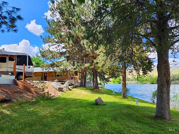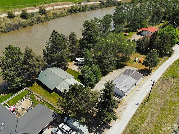 ENDLESS POSSIBILITIES ON 3 RIVERFRONT LOTS WITH 240' OF FRONTAGE ON THE PAYETTE RIVER! Park-like setting with cedar siding and sandstone single-level home with multiple decks for relaxation or entertaining! Open-concept living, dining, and kitchen with hardwood floors and updated windows to enjoy views of the river and wildlife! Newer pellet stove and mini split system offer heat and cooling. Pantry/laundry room off kitchen with new vinyl laminate flooring. Unique master bedroom with cork flooring, walk-in closet with barn doors, and custom rustic-style bathroom. The attached carport can accommodate 3 cars and has a bonus room for storage or possible craft room. Metal roof was replaced in 2017. The detached garage/shop has built-in workbenches, shelving, 220v power, and wood-burning stove. A small shelter/stall outside of shop for livestock or storage of recreational vehicles. Property includes an RV on a pad with a deck that could be renovated for an AirBNB or guest quarters. NO CC&RS! 2 WELLS AND SEPTIC!