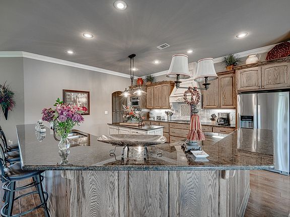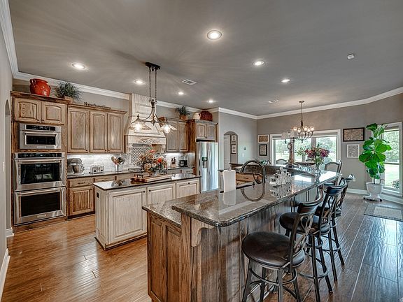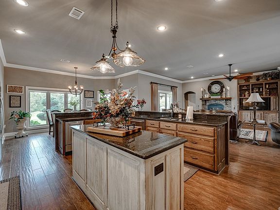 Amazing property on 20 acres cross fenced featuring a 2800 sq ft home 3/2 with bonus room and safe room. Kitchen is gorgeous and has an beautiful island and huge bar open to living room area with hardwood floors. Kitchen has kitchen aide appliances, large walk in pantry, gas stove top, double ovens, ice maker, and lots of granite.In the master we have built in air tub, walk in closet and built in dresser. Home #2 shophouse 2/1 with 800sq ft garage. Large 30x40 shop, stocked pond and backyard oasis with pool