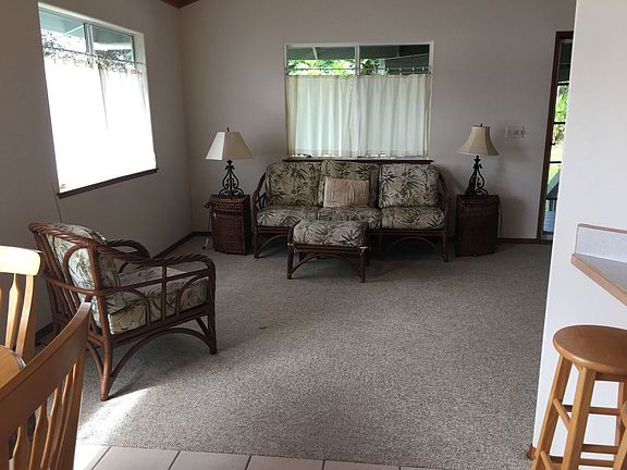 Partially furnished 3BR/2BA home in Hawaiian Paradise Park. Features a 2-car garage and screened in back lanai. Additional large covered entertainment area in the back yard. This home is on water catchment system. Yard service included in the rent. Dog or cat ok with pet deposit. DO NOT ACCESS the property nor drive into the driveway without the Property Manager. The drive-by is intended to help the applicant determine the property is situated in a desired location with acceptable surroundings/neighborhood.