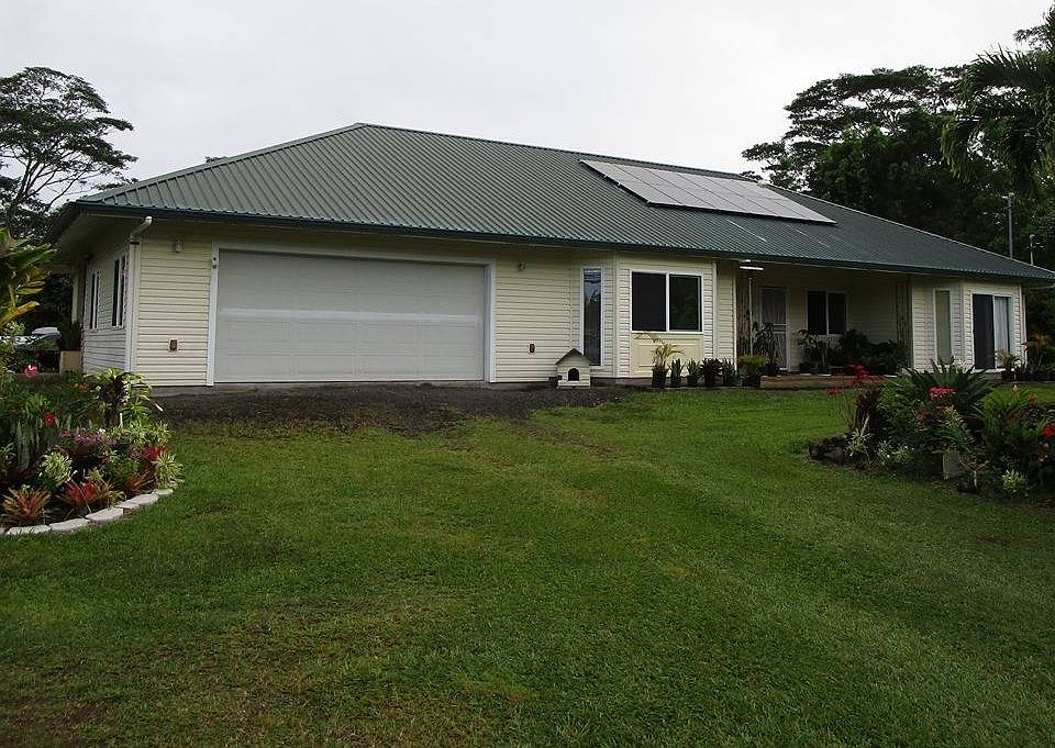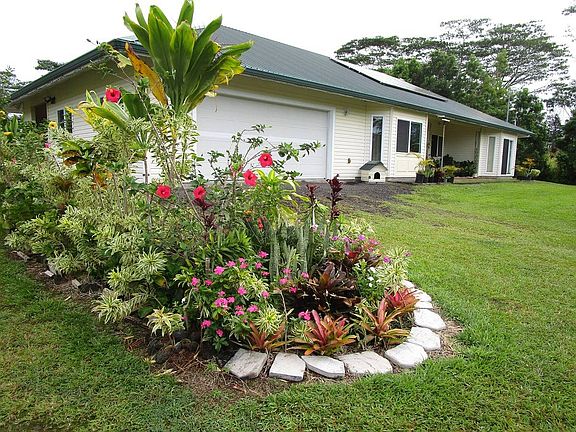 Lovely custom designed home that comes with open living/dining area with vaulted ceilings, waine's coat walls and bay windows. Spacious primary suite with huge walk-in closet and surround tiled shower enclosure. Comes with granite countertops and tiled flooring throughout. The grounds beautiful with numerous flouring plants and palm trees throughout. Some of the fruit trees include Papaya, Mango, Avocado, Lychee, Banana, Mountain Apple, Loagan, Star fruit and etc. Has 12 paid for PV panels. Located on paved 12th Ave. for easy access!