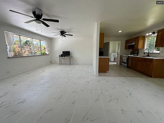 Partially remodeled traditional style home with 3 bedroom and 3 baths on pavement. Located in popular Hawaiian Paradise Park. This home has beautiful front and back yard with Hawaiian plants. New porcelain tile floor provides pleasant life without dampness inside of the house. Recessed lighting , 10k gallon catchment, UV water filtration, 2 car enclosed garage, washer and dryer included, beautiful stone wall gated entry and many more. Guava, Avocado, passion fruit, lime, orange, ulu and coconut trees are on the property. This perfect and well-built starter house is located in just one block away from main road for easy access to main road and just a few minutes away from Pahoa Town with it's many conveniences including, but not limited to: Malama Market, Longs Drug Store, Aloha Gas Station, Hardware Stores, Health Food Stores, a Gym. Various Restaurants, a Credit Union, Banks, and much more! Police Department and Fire Department just up the road. The Puna Kai Shopping Center is now open with many new stores and businesses! Hilo town and the airport is just about a 20-25 minute drive away. Owner's car will be parked in the garage. Rental insurance is required. Background and credit check will be required. 6 months then month to month after. Max 3 people occupancy.