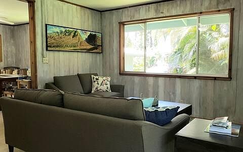 Highly desirable neighborhood outside of Hilo, situated on one acre of botanical wonders; tropical fruits and flower trees. This charming home offers 3 oversized bedrooms, 2 bath, living room, dining room, fully equipped kitchen with breakfast bar Short drive to beaches, volcanoes, snorkeling and botanical gardens. Large sitting porch overviewing water lily pond and separate outdoor barbeque area. There are 2 living quarters. One home is for guests and the other is owner's living quarters. Owner Pays all the Utility Bills including wifi and TV. Renters are responsible for any major damages or repairs happening while their stay duration. The Security Deposit is refundable depending on the condition of the house while the tenant is leaving.