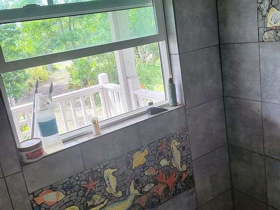 Beautiful artist inspired home with custom features to include custom made kitchen, stained glass panels, custom ceramic art details throughout home, gorgeous and ample front and back lanai covered area adds another 1000 sft of living area that is covered. This is one master bedroom and the dining room can be converted into another bedroom or office. Two lovely popup sitting areas in bed and dining room. Easy access to ocean area just a short walk away.