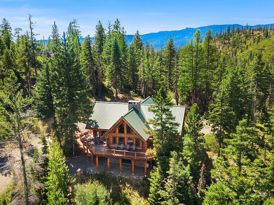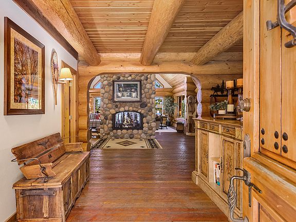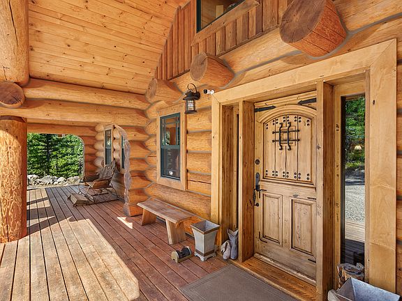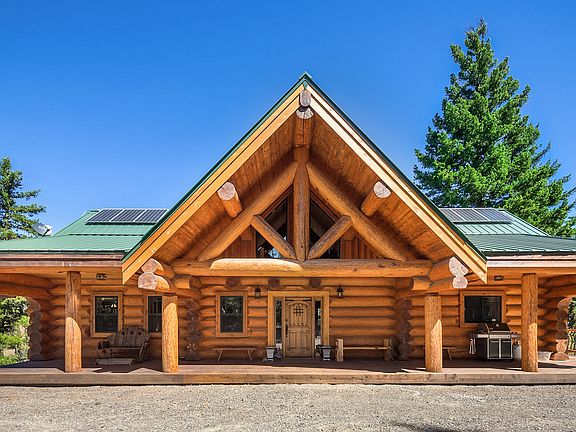 Adventure abounds in this custom log home sited on 10 acres. Incredible craftsmanship & classical design elements are complemented by modern amenities. Five bedrooms afford space to comfortably entertain while custom finishes--including masterful stone fireplace, saddle barstools, & antique gas range--spark conversation. Backing 4,000 acres of forest land, enjoy an off-the-grid lifestyle with generator & solar system, powering entire estate for true seclusion. Two shops--60x40' & 20x30'--each with 20' overhangs provide storage for toys. Thoughtfully positioned in a historical town & suited for ease to live/work/play through any season, enjoy local skiing, snowmobiling, fishing, water rafting, boating & hiking. Snowcat included.