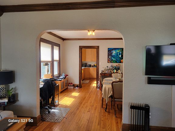 This tastefully updated home blends modern comfort with original charm. Refinished wood floors, elegant trim, and detailed molding add warmth and character throughout. Before you even step inside, a spacious walk-in closet enhances organization. Love natural light? With three front-facing windows, the large living room is bathed in sunshine, enhanced by a stunning stained-glass window. A graceful archway leads to the formal dining room, where more windows bring in even more natural light. The updated kitchen features granite counters, abundant cabinetry, stainless steel appliances, and a charming vintage built-in ironing board. Two well-sized bedrooms, an updated full bath, and hook-ups for a dedicated washer and dryer in the basement complete the space. Additional perks include 24-hour on-street parking and potential attic storage. Welcome home! The tenant is in the process of moving, so the photos shown are of the 1st Floor Apartment. Both units are nearly identical in layout, finishes, and features. Tenant is responsible for gas, electric, and the first $125 of any repairs. Credit check required through NTN only. 12 months (1 year). Tenant is responsible for gas, electric, and the first $125 of any repairs. Credit check required through NTN only. No smoking. Parking permit needed to be purchased through town