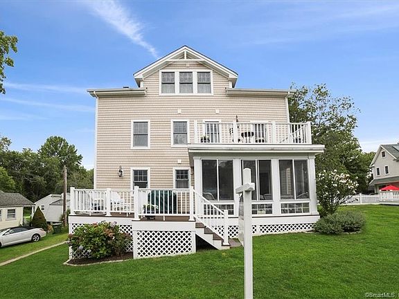 Impeccably maintained year-round beach house located less than 300 ft. from a beautiful private sandy beach with water views that are yours to use all year long. Perfect property and opportunity to establish a VRBO. Great rental potential and 4 full baths for convenience. Originally built as a year-round residence, lovingly renovated with a well-designed floor plan including the addition of 2 guest bedrooms with en-suite private baths. Master bedroom suite includes private balcony overlooking Long Island Sound, walk in closets, and large private sitting area with its own coffee bar allows you to enjoy your morning or evening beverages in quiet contemplation of a morning sunrise or sunset. Over-sized bedrooms, walk out finished basement and four full bathrooms afford you the space to have your friends and family visit in total comfort. An open kitchen and dining area are perfect for entertaining and lead into a bright and airy 3 season sunroom that adjoins to an outside Ipe deck. The exterior boasts Cedar Impressions siding, Azek trim & Anderson windows so you can spend your days enjoying the beach and the serenity of your private lot encompassed by trees. An ample lawn and gardens with its own irrigation system allows for quiet enjoyment of your own piece of paradise by the sea. This residence offers splendor both day and night, with swimming kayaking & deep-water moorings on the Sound w/deeded beach rights to Chapman Beach. No flood insurance