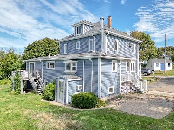 Welcome ! This 6-bedroom, 3-bath Colonial offers over 2,500 sq ft of living space on a rare dead-end/0.37-acre lot in the desirable Whitehead neighborhood. This home offers character w/recent updates: AC, Newer Roof/Siding/Windows, New Heating, and hardwood floors throughout. Sun-filled rooms, a flexible layout, w/a bathroom on each level, a partially finished basement w/ large studio area, full bath, kitchenette and separate entrance, make this home both functional and inviting. 1st floor features electric blinds, wood stove & 2 bedrooms, while the 2nd floor has 3/4 bedrooms with a wet bar & extra fridge for essentials. Enjoy the bright enclosed sun porch & 2 decks/balconies that overlook the neighborhood. Outside, you’ll find two sheds as well as expansive yard space for gardening, play, or gatherings. Minutes from Hull’s beaches and coastline, with easy access to schools, shops, and Boston commuter options, this property offers the perfect South Shore lifestyle. Not in Flood Zone