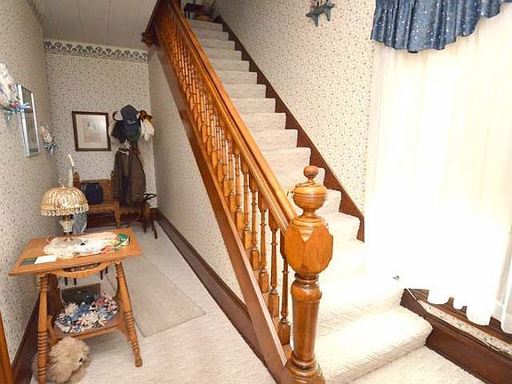 Charming home in Tidioute, has nice curb appeal, large rooms, carpeting throughout and natural woodwork.
