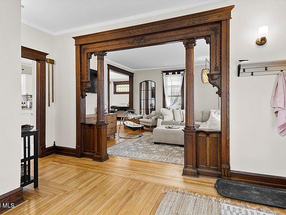 Step into timeless elegance w this beautifully remodeled 4-bedroom Victorian home, where historic charm meets modern convenience! From the moment you enter the welcoming foyer, you'll be captivated by the stunning original woodwork, built-ins, ornate pillars & the bifurcated staircase leading to the upper level. On the main level, enjoy an inviting living room, a beautiful kitchen w newer appliances, half bath & a formal dining room that opens to the wraparound porch—perfect for entertaining or relaxing outdoors! The 2nd floor boasts 4 spacious bedrooms & a beautifully updated full bath. Walk up attic, loads of closet space! So much new including boiler, plumbing & lighting! Large landscaped lot w newly paved driveway! Full of character, this one-of-a-kind property is ready for you!