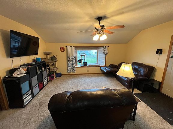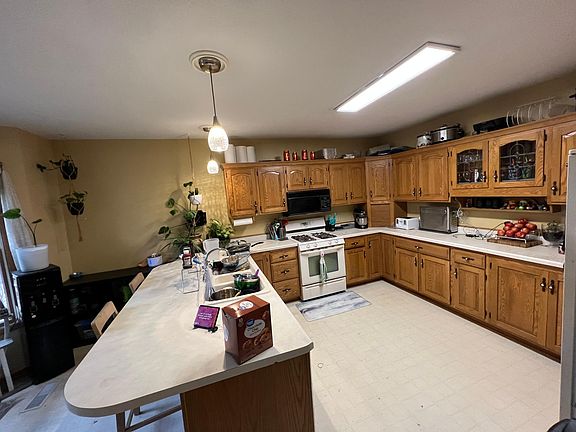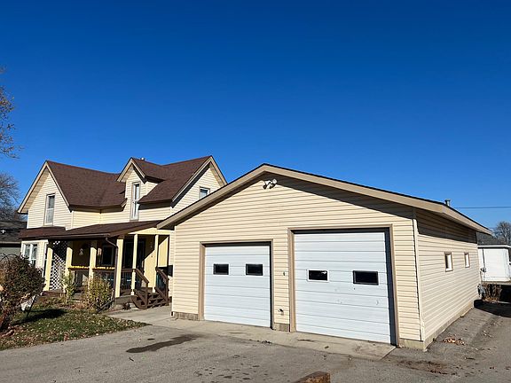 Big garage 1040' sq ft has heated work shop area 220 elect with office and store room. More parking off the alley in the back. Large fenced back yard with deck. Beautiful perennial beds and gardens everywhere. All steel siding, large custom kitchen and dining area. Main Floor laundry.