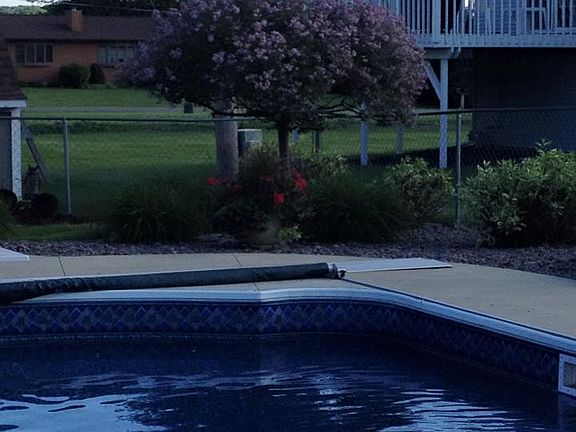 Glorious 4 bedroom, 3 bath home with heated garage with new insulated garage door. Walk into your relaxing backyard on the paved walkway. And sit around the fire pit while watching the kids swim in the in-ground pool. Comes with water slide and diving board. Deep end is 8' deep. Has a automatic cover and pool house with shower and toilet. Also in backyard is pool pump house for the pool with all the mechanicals. Home has beautiful natural hardwood floors in dining and kitchen. Bathrooms and foyer have tiled floors. Basement is finished with daylight windows. Nice vaulted ceiling in main living area, and access to deck from dining room. Very nice sized deep closets. And lots of storage.