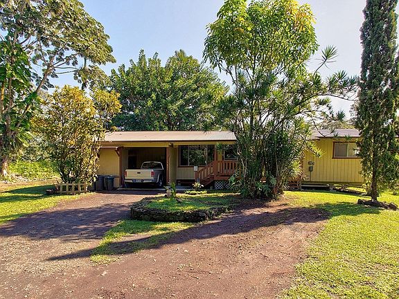 Corner lot located in Hawaiian Shores Subdivision. Large home with front lanai/deck great for outdoor living with nice view of the lush landscaped yard. Carport includes a work area and laundry room. Living room is spacious with additional enclosed room currently being used as a gym. Exterior door off the living room leads to a grassy area ideal for a BBQ grill area and plenty of room for patio furniture. Home sits away from the road with grassy mature landscaping. Home is sold fully furnished. New paint in bathrooms and window A/C in master bedroom and guest bedroom provide cool comfort on warm days.Located approximately 20miles from the town of Hilo and a short drive to downtown Pahoa and the ocean to enjoy the view during your morning walks!