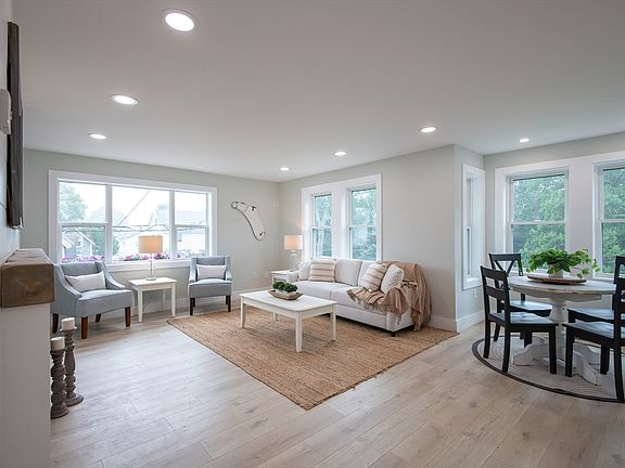 Step into seaside sophisticatinon with this fully rebuilt three-level home just steps from Onset Beach! Fully ready to move-in or rent, this stunning contemporary home blends functionality and coastal charm. The main level offers an open-concept layout with a spacious kitchen, dining area, half bath, and living room centered around a stylish fireplace. Enjoy quartz countertops, new cabinetry, a large island, new appliances, and a bright breakfast nook. Upstairs features two generous bedrooms, each with private full baths. The primary suite includes a soaking tub, an eligagent tiled shower, and a new vanity. The second bedroom has a private bath with stand-up shower and new fixtures. Laundry is conveniently located in the upper hall. The lower level with one car garage is perfect for storage. Constructed with 2 x 6 and hurricane strapping. A short walk to Onset Beach, marina, shops, and restaurants. Enjoy festivals, concerts, kayaking, swimming and boating—all without the Cape traffic!!